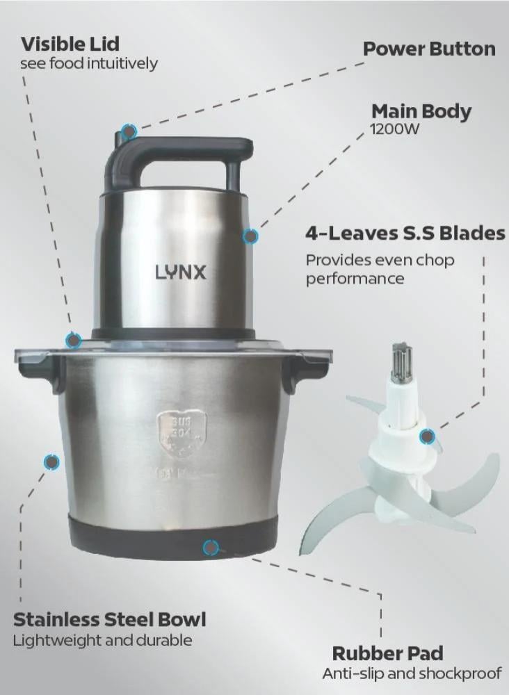 تتميز ماكينة فرم اللحم لينكس LY-CH-5007 بمحرك قوي بقدرة 1200 وات، يجعلها قادرة على التعامل مع اللحوم والخضروات والفواكه بكفاءة عالية. تأتي بسعة وعاء 6.5 لتر مصنوع من الستانلس ستيل المقاوم للصدأ، ما يسمح بتحضير كميات كبيرة من الطعام في وقت قصير.