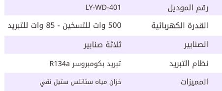 • كفاءة عالية واستهلاك اقتصادي: قدرة تسخين 500 واط وتبريد 85 واط.