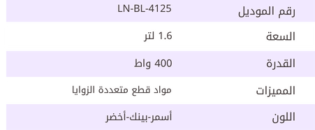 • سعة كبيرة تصل إلى 1.6 لتر تكفي للاستخدام العائلي أو الجماعي.