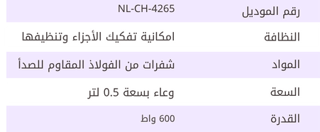 • قوة 600 واط توفر أداءً ممتازًا للخلط والطحن اليومي