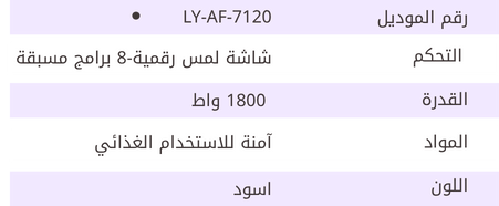 استمتعي بمذاق الطعام المقلي المقرمش دون الحاجة لاستخدام الكثير من الزيت مع القلاية الهوائية لينكس، المصممة لتمنحك تجربة طهي عصرية وصحية في كل وجبة. الوصف الرئيسي:قدرة قوية 1800 واط لتسخين سريع وفعال.ش...