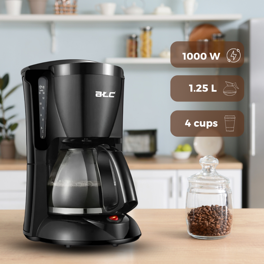 تم تصميم ماكينة القهوة H-CM1812 لتلبية احتياجاتك اليومية بكل سهولة وكفاءة. تأتي بسعة 1.25 لتر لتحضير 4 أكواب في كل مرة، مع قوة 1000 واط لضمان تسخين سريع وتحضير مثالي.