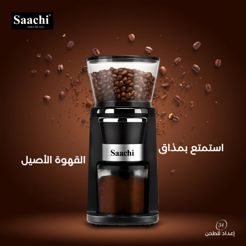 استمتع بتحكم كامل في درجة الطحن مع مطحنة قهوة ساتشي NL-CG-4971، شفرات ذاتية الشحذ، 34 إعداد دقيق ونظام أمان متطور تمنحك قهوة طازجة بطعم احترافي كل صباح.