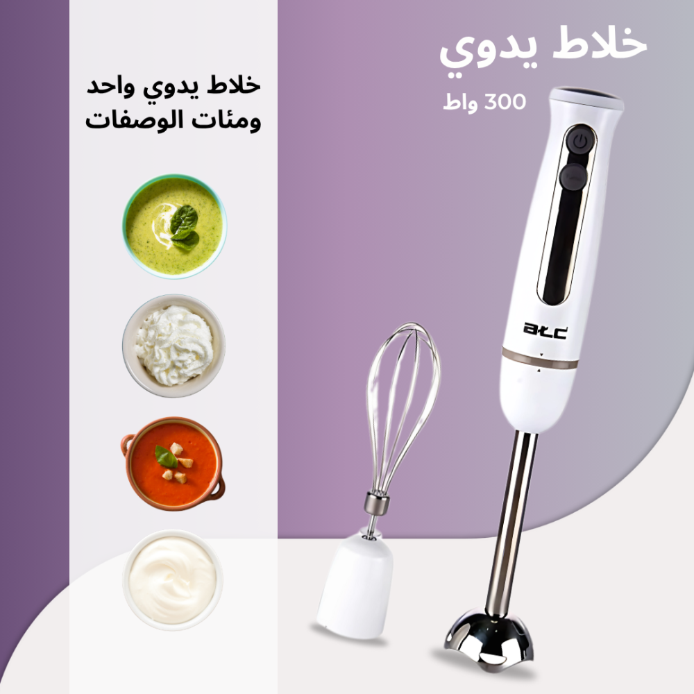 اختبر القوة والراحة مع خلاط يدوي 300 واط من الستانلس ستيل H-HB792. تصميم عملي بسرعتين وشفرات قوية لخلط الشوربات والعصائر والصلصات بسهولة وسرعة.