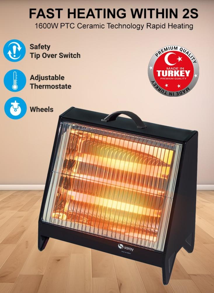 احصل على الدفء بأمان مع دفاية سراي الكهربائية SML 1030 – قدرة 1600 واط، 3 عناصر تسخين، وتصميم أنيق لتدفئة مثالية في الشتاء.