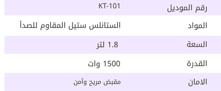 لو محتاجة غلاية عملية يعتمد عليها في البيت،غلاية لينكس الكهربائية KT-100 بتوفر لك غليان سريع بقدرة 1500 وات، مع جسم ستانلس ستيل متين يحافظ على جودة الماء ويضمن استخدام آمن وطويل الأمد.ليه تشتريها من ا...