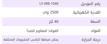 اكتشف غلاية كهربائية LY-WB-1040 بسعة 40 لتر بقوة 2500 وات. مثالية للمطاعم والمؤسسات، مصنوعة من الستانلس ستيل لمتانة وسهولة تنظيف، مع تحكم دقيق بالحرارة.
